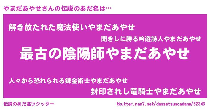 | ファンタジー風あだ名 | 『エターナルヤマダアヤセー』 |
