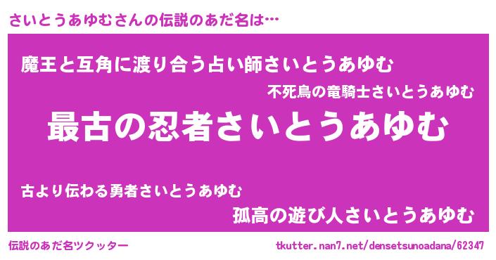 | 意味不明あだ名 | 『さいとうあゆむフォーエバー』 |