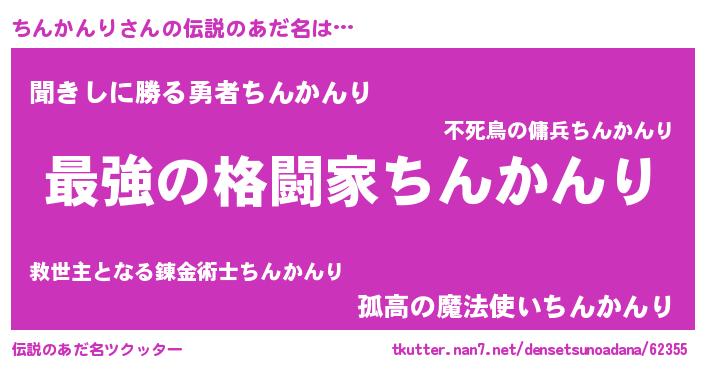 | 意味不明あだ名 | 『ちんかんりフォーエバー』 |