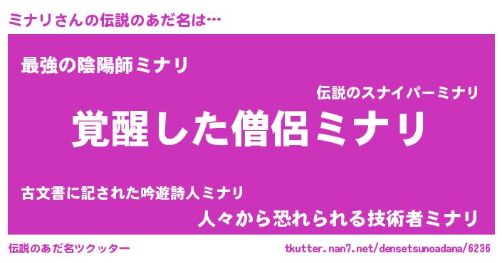 | 男性向けラノベタイトル風あだ名 | 『ミナリの嫁は女の子じゃないと思った?』 |