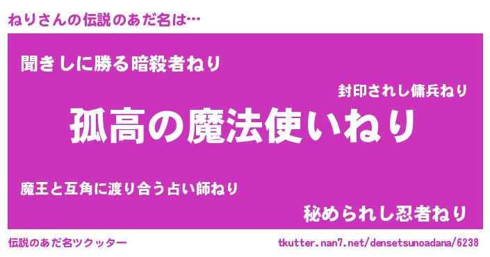 | 男性向けラノベタイトル風あだ名 | 『ダンジョンにねりを求めるのは間違っているだろうか』 |