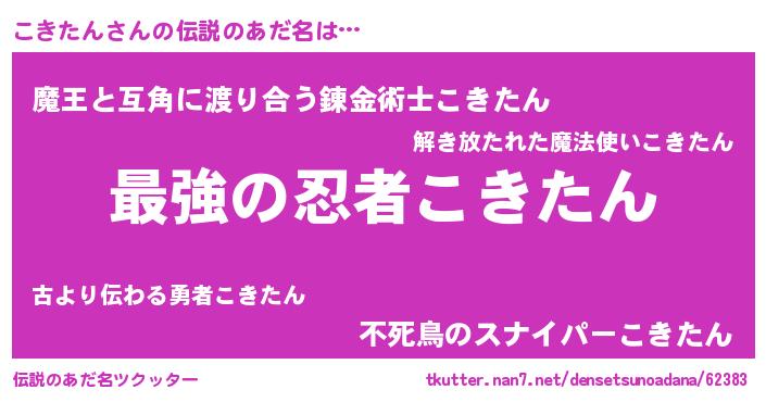 | ファンタジー風あだ名 | 『エターナルコキタンー』『ゼコキトゥ』 |