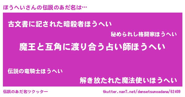 | ヘコむあだ名 | 『ほうへい(爆)』『ほう太郎』 |