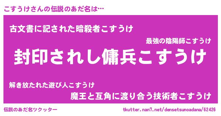 | 意味不明あだ名 | 『ペロリンこすうけ』『永久保存こすうけ』 |
