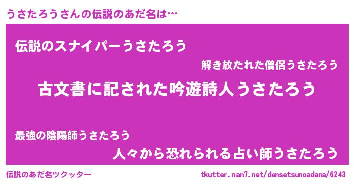 | ヒーロー風カッコイイあだ名 | 『ネオウサタロウ』『スーパーウサタロウ』 |