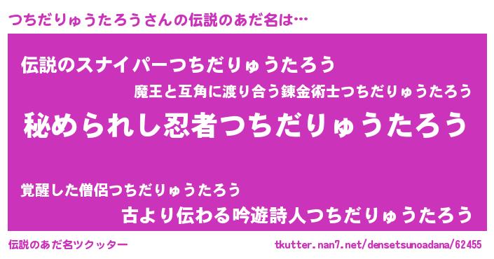 | 意味不明あだ名 | 『住所不定無職つちだりゅうたろう(65歳)』 |