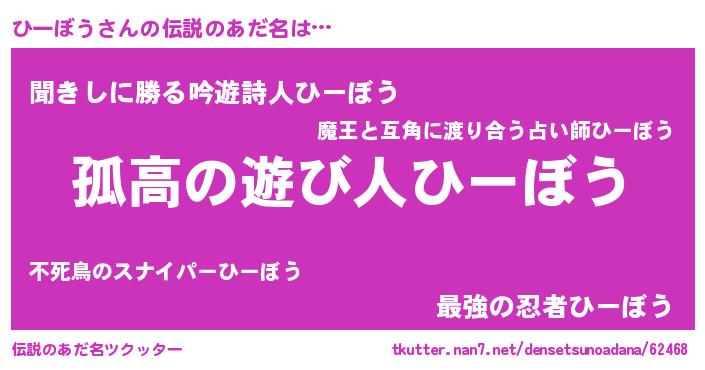 | ヒーロー風カッコイイあだ名 | 『暗黒騎士ヒー』『超時空戦士ヒーボウ』 |