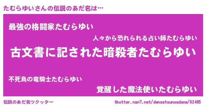 | 意味不明あだ名 | 『自称たむらゆい』『永久保存たむらゆい』 |