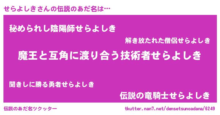 | ヒーロー風カッコイイあだ名 | 『仮面セラダー』『愛の使者せらよしき』 |