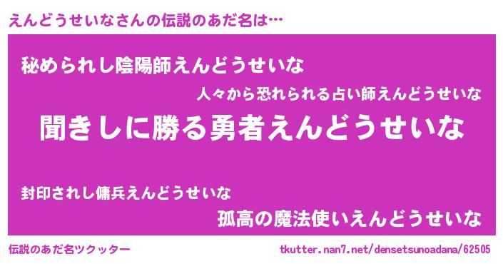 | 意味不明あだ名 | 『自称えんどうせいな』 |
