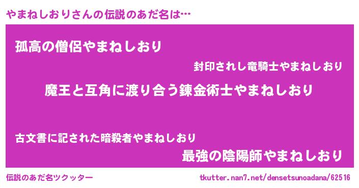 | ヒーロー風カッコイイあだ名 | 『愛の使者やまねしおり』『暗黒騎士ヤマ』 |