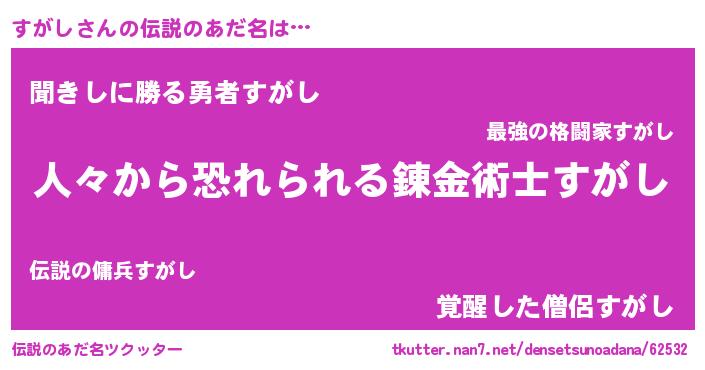 | ヒーロー風カッコイイあだ名 | 『正義の使者すがし』『ネオスガシ』 |