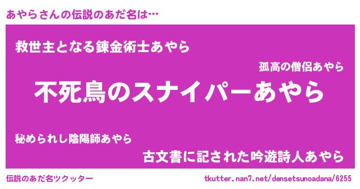| ファンタジー風あだ名 | 『アヤフェル』『ゼアヤトゥ』 |