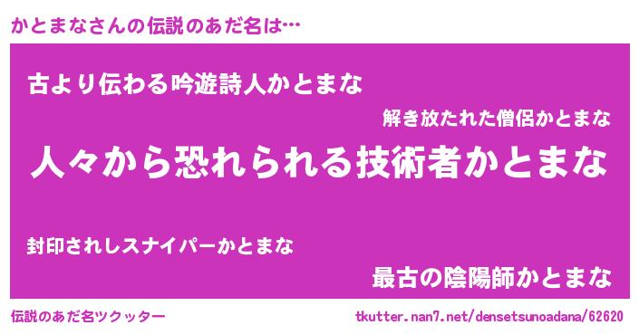 | 男性向けラノベタイトル風あだ名 | 『おまえをオタクにしてやるから、俺をかとまなにしてくれ! 』 |
