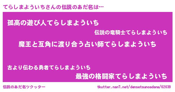 | 男性向けラノベタイトル風あだ名 | 『ノーゲーム・ノーテラシマヨウイチ』 |
