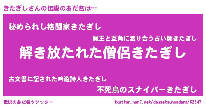 | 意味不明あだ名 | 『とにかく怪しいきたぎし』 |