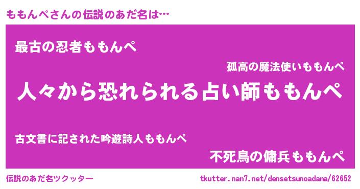 | ヒーロー風カッコイイあだ名 | 『正義の使者ももんぺ』『仮面モモダー』 |
