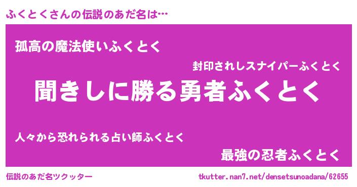 | ヒーロー風カッコイイあだ名 | 『ネオフクトク』『暗黒騎士フク』 |