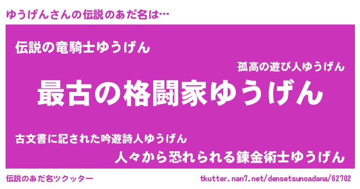 | ポケモン風あだ名 | 『ユウゲダネ』『ユウチュウ』 |