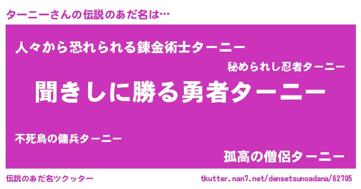 | 意味不明あだ名 | 『永久保存ターニー』 |