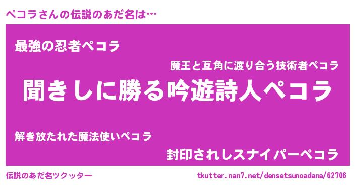 | ヒーロー風カッコイイあだ名 | 『ネオペコラ』『仮面ペコダー』 |