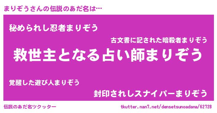 | ヒーロー風カッコイイあだ名 | 『天空の使者まりぞう』『ネオマリゾウ』 |