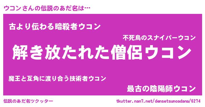 | 意味不明あだ名 | 『とにかく怪しいウコン』『自称ウコン』 |