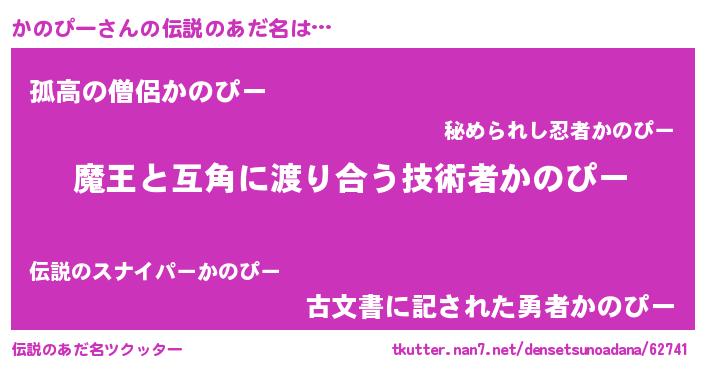 | 意味不明あだ名 | 『住所不定無職かのぴー(11歳)』 |