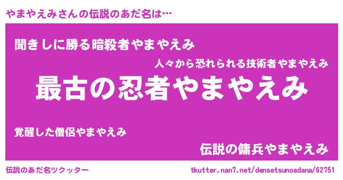 | 意味不明あだ名 | 『自称やまやえみ』『永久保存やまやえみ』 |