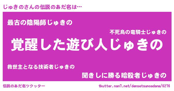 | ヒーロー風カッコイイあだ名 | 『幻影騎士ジュ』『ウルトラじゅきのマン』 |