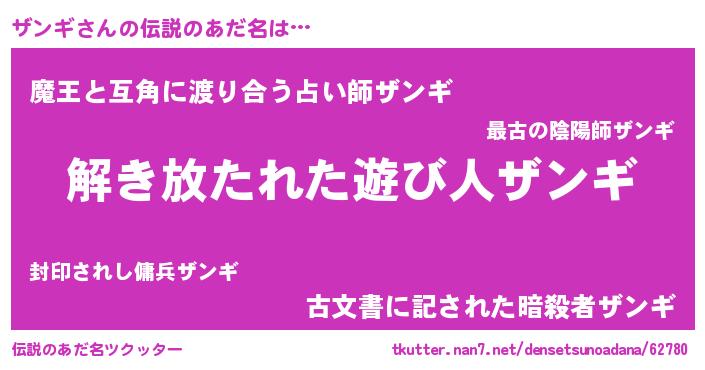 | ヒーロー風カッコイイあだ名 | 『銀牙騎士ザン』『ウルトラ戦士ザンギ』 |