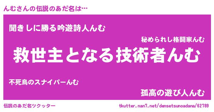 | ヒーロー風カッコイイあだ名 | 『仮面ンムダー』『天空の使者んむ』 |