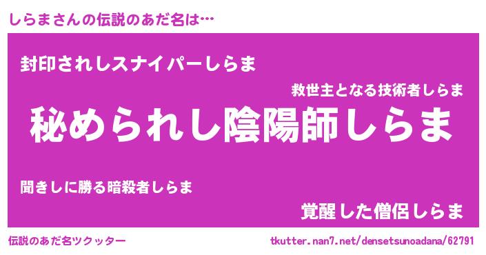 | ヒーロー風カッコイイあだ名 | 『ウルトラしらまマン』『スーパーシラマ』 |