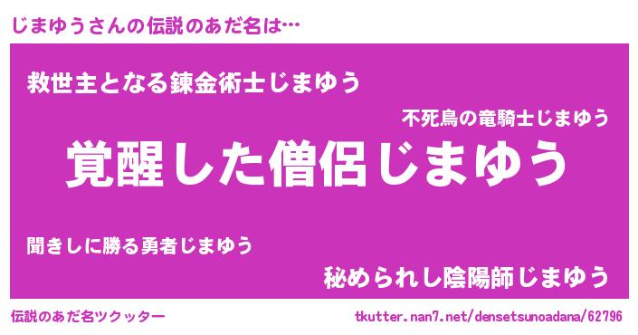 | 女子向けラノベタイトル風あだ名 | 『じまゆう様がみてる』 |