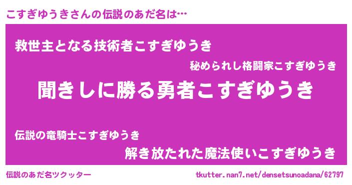 | 意味不明あだ名 | 『自称こすぎゆうき』 |