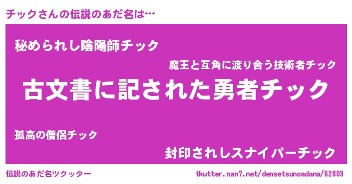 | 意味不明あだ名 | 『永久保存チック』『チックフォーエバー』 |