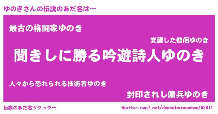 | 意味不明あだ名 | 『住所不定無職ゆのき(7歳)』 |