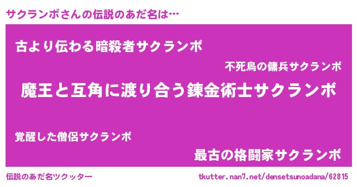 | 女子向けラノベタイトル風あだ名 | 『サクランボ恋絵巻』 |