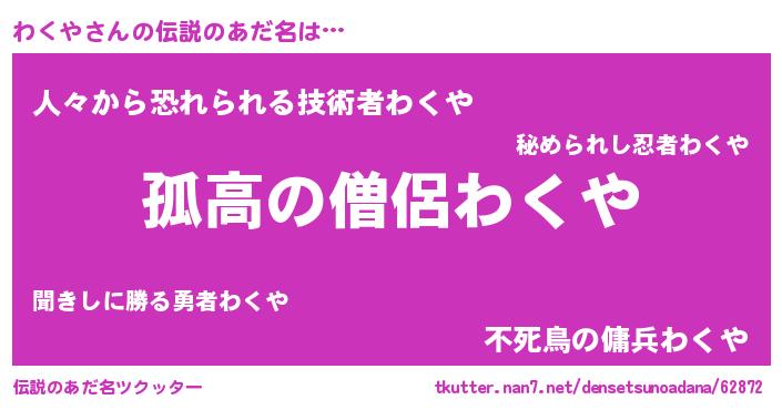 | 意味不明あだ名 | 『自称わくや』『住所不定無職わくや(10歳)』 |