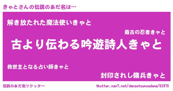 | ファンタジー風あだ名 | 『ゼキャトゥ』『キャディッシュ』 |