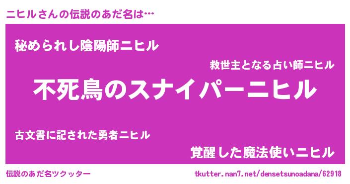 | ポケモン風あだ名 | 『ニヒキング』『ニヒチュウ』 |