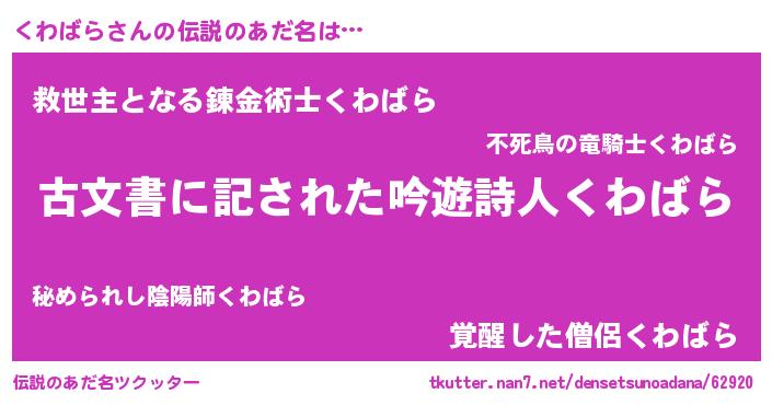 | 意味不明あだ名 | 『住所不定無職くわばら(8歳)』 |