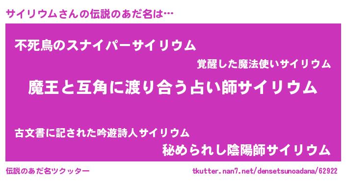 | ヒーロー風カッコイイあだ名 | 『愛の使者サイリウム』『暗黒騎士サイ』 |