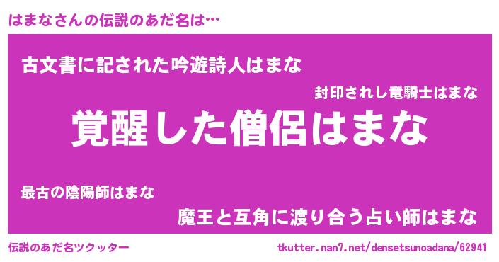 | 意味不明あだ名 | 『とにかく怪しいはまな』『自称はまな』 |