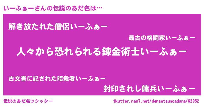| 男性向けラノベタイトル風あだ名 | 『はたらくいーふぁーさま!』 |