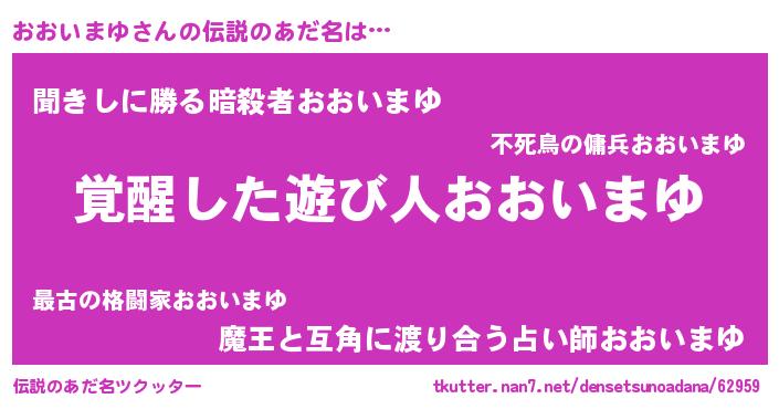| ヒーロー風カッコイイあだ名 | 『幻影騎士オオ』『ネオオオイマユ』 |
