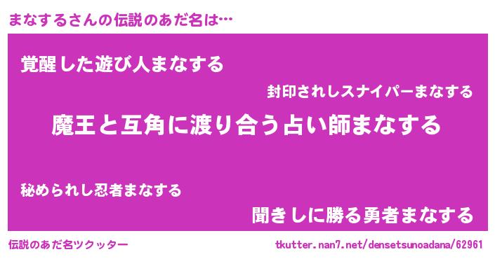 | ヒーロー風カッコイイあだ名 | 『愛の使者まなする』『究極戦士マナスル』 |