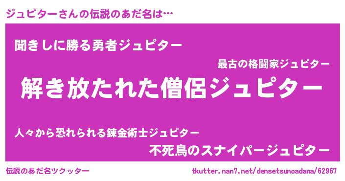 | ポケモン風あだ名 | 『ジーュイ』『ヒジュピター』 |