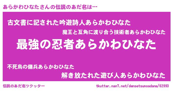 | ファンタジー風あだ名 | 『エターナルアラカワヒナター』 |