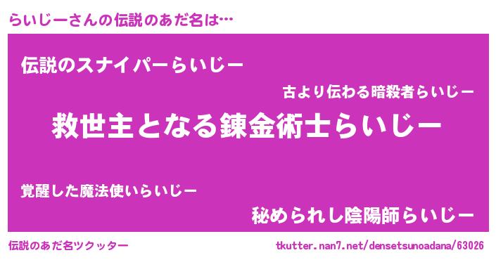 | ヒーロー風カッコイイあだ名 | 『慈愛の使者らいじー』『ネオライジー』 |